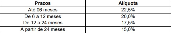 renda fixa. As alíquotas incidem apenas sobre o ganho de capital (juros), são